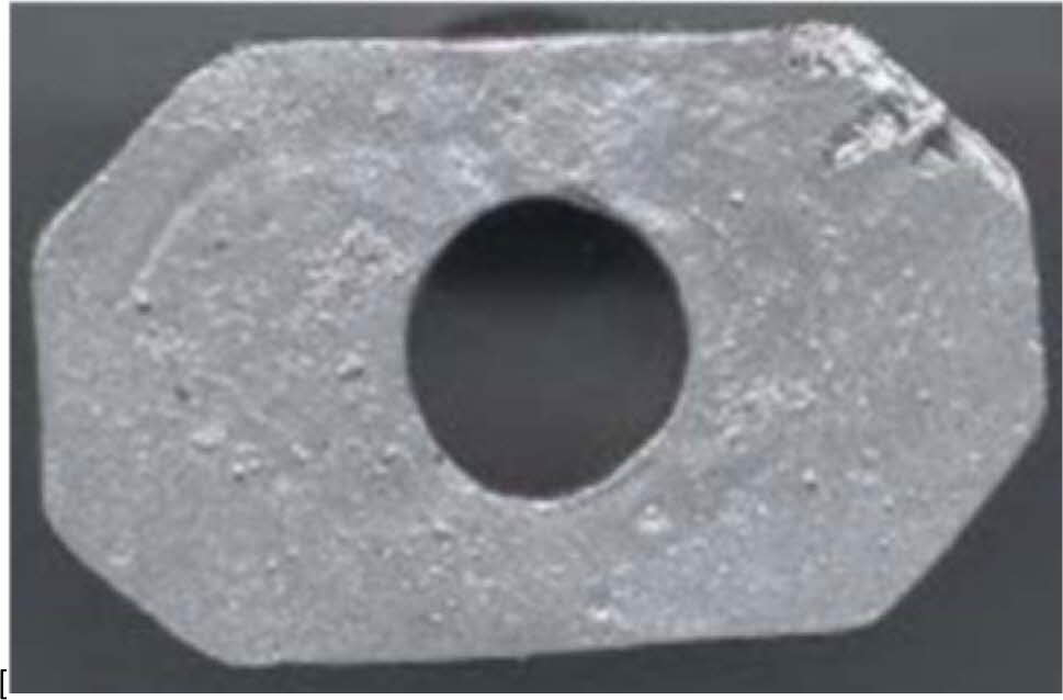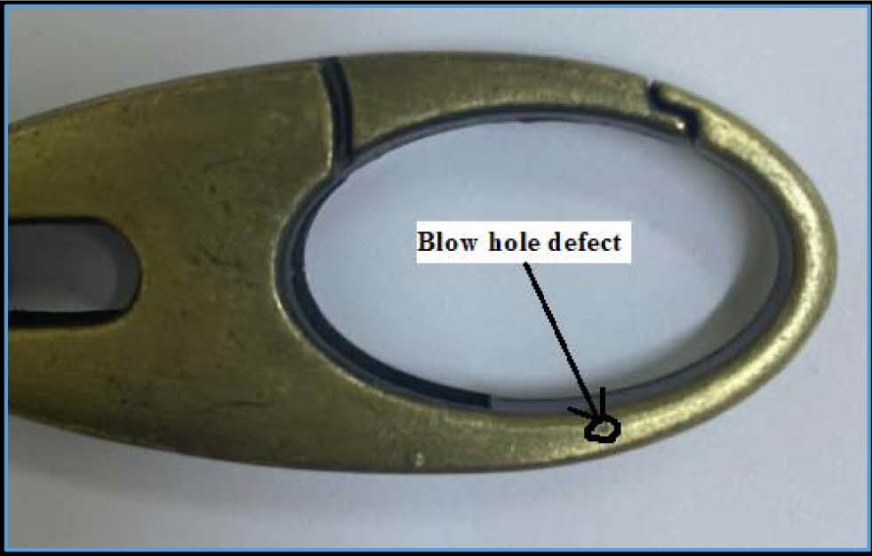 Blow holes, as shown in Fig. 2, are types of internal defects that include very small internal cavities. Blow holes can only be seen after machining or by heavy shot blasting. The blow holes are, in fact, smooth walled isolated cavities. Bubbles or holes are formed by trapping gases during pouring and solidification. When pouring molten metal into the wet sand mold, large amounts of gases will be generated. With poor ventilation, they will remain inside the casting as defects in the upper part of the mold [33- 35]. The blow hole defect can be reduced or eliminated by the controlled moisture content, volatile components, permeability, and ventilation of mold [36].
