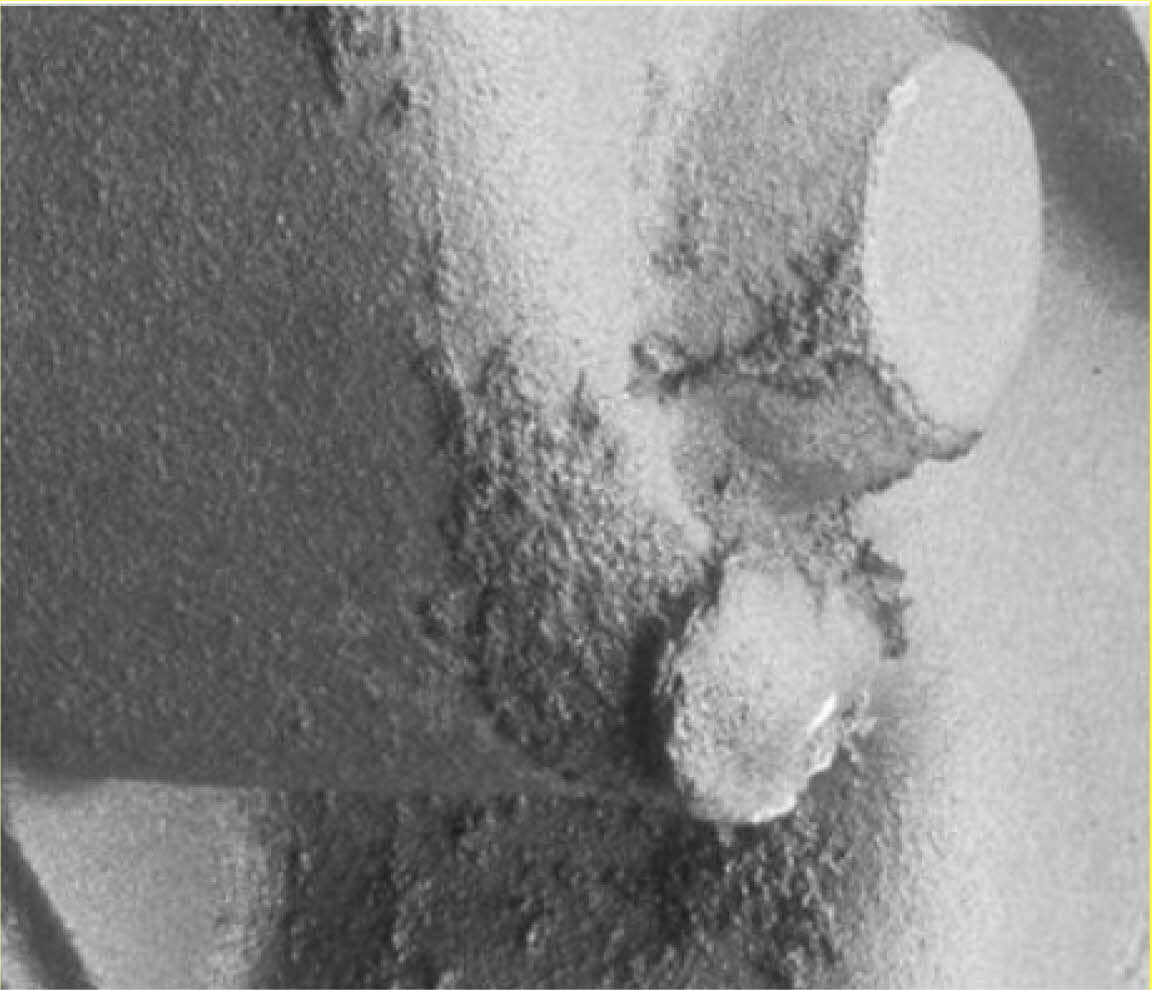 Scars, as shown in Fig. 3, are surface defects and occur due to inappropriate permeability of sand. The scar appears at the surface and also directly below the surface of casting in large numbers together. The scar defect is obvious to the eye and do not require equipment to identify. It can be prevented by maintaining the pouring temperature at appropriate levels [37].