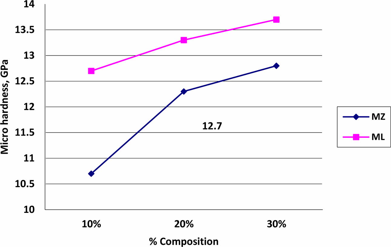 Fig. 5 Micro hardness values of MZ and ML coated test specimens. |