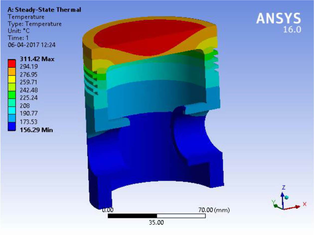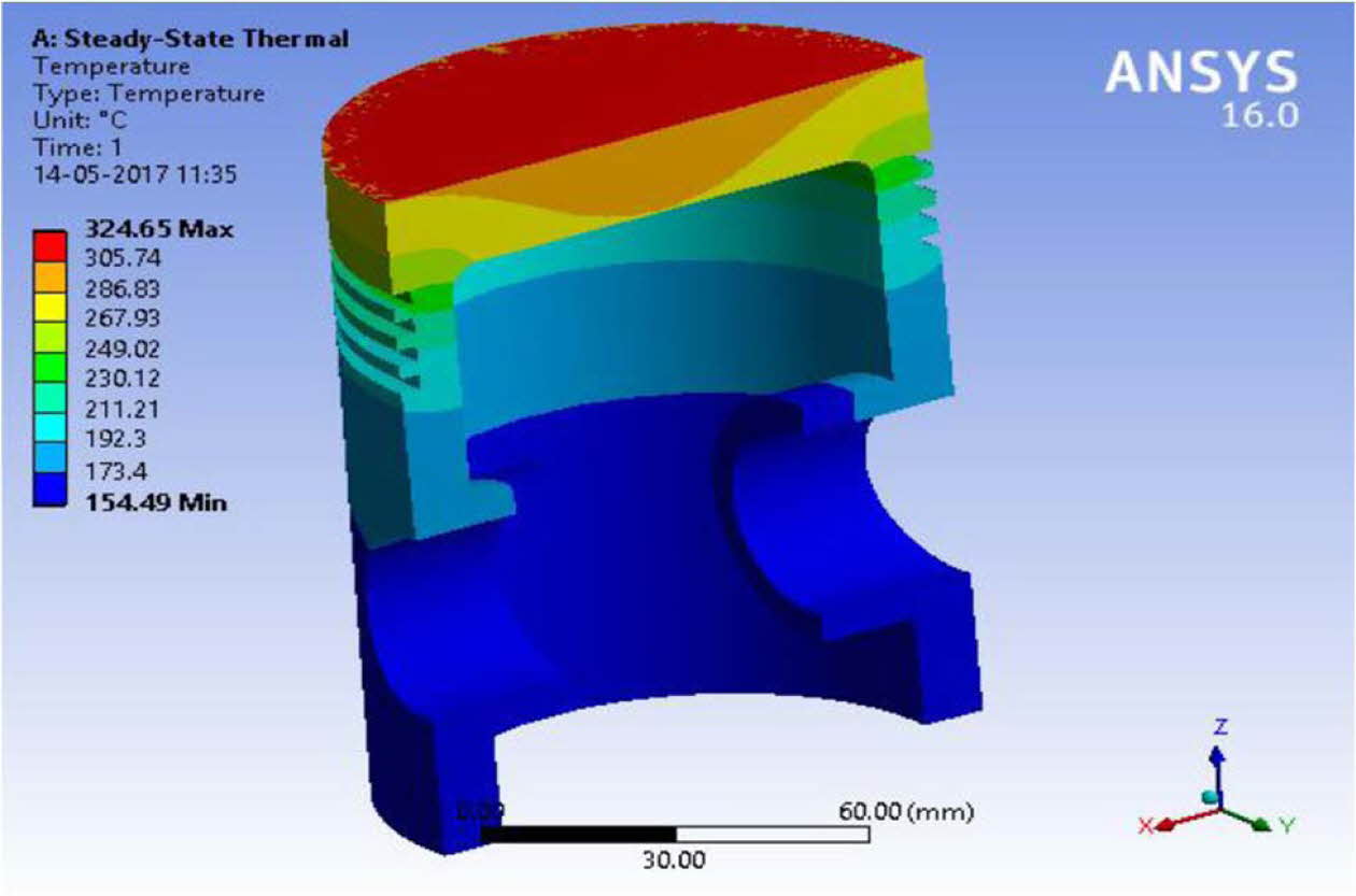Fig. 8 Thermal stress analysis of ML1 coated Aluminium alloy piston. |