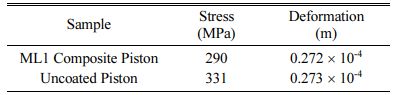 The numerical thermal stress analysis results of ML1 coated piston are lower than the uncoated pistons in terms of the deformation and residual stress values. The deformation arising due to residual stresses during operation is lower for ML1 coatings in comparison with uncoated pistons. The coupled analysis, confirms that ML1 coated double layered TBC helps to increase the operating temperature of the piston.