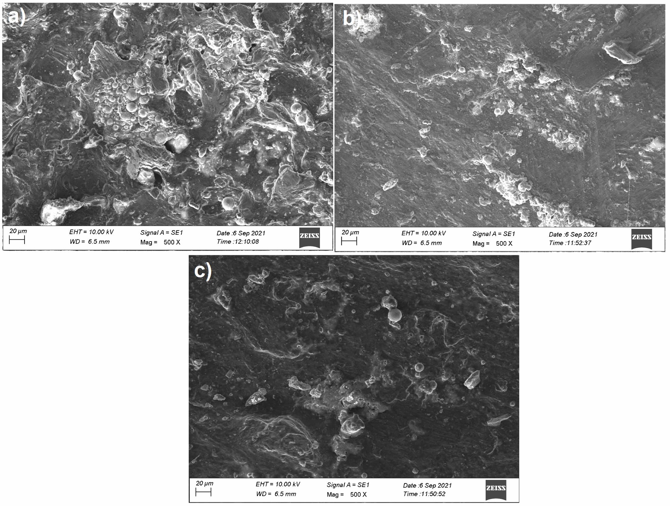The electronic balance of 0.0001 g precision was used to measure the wear loss of the specimen. Each sample was cleaned with acetone before and after wear tests to remove wear debris. The variations in the weight observed before and after the test provided the wear loss of the composites through dry sliding, which was transformed into the volume loss. The wear rate (WR) was computed using Eq. (1).