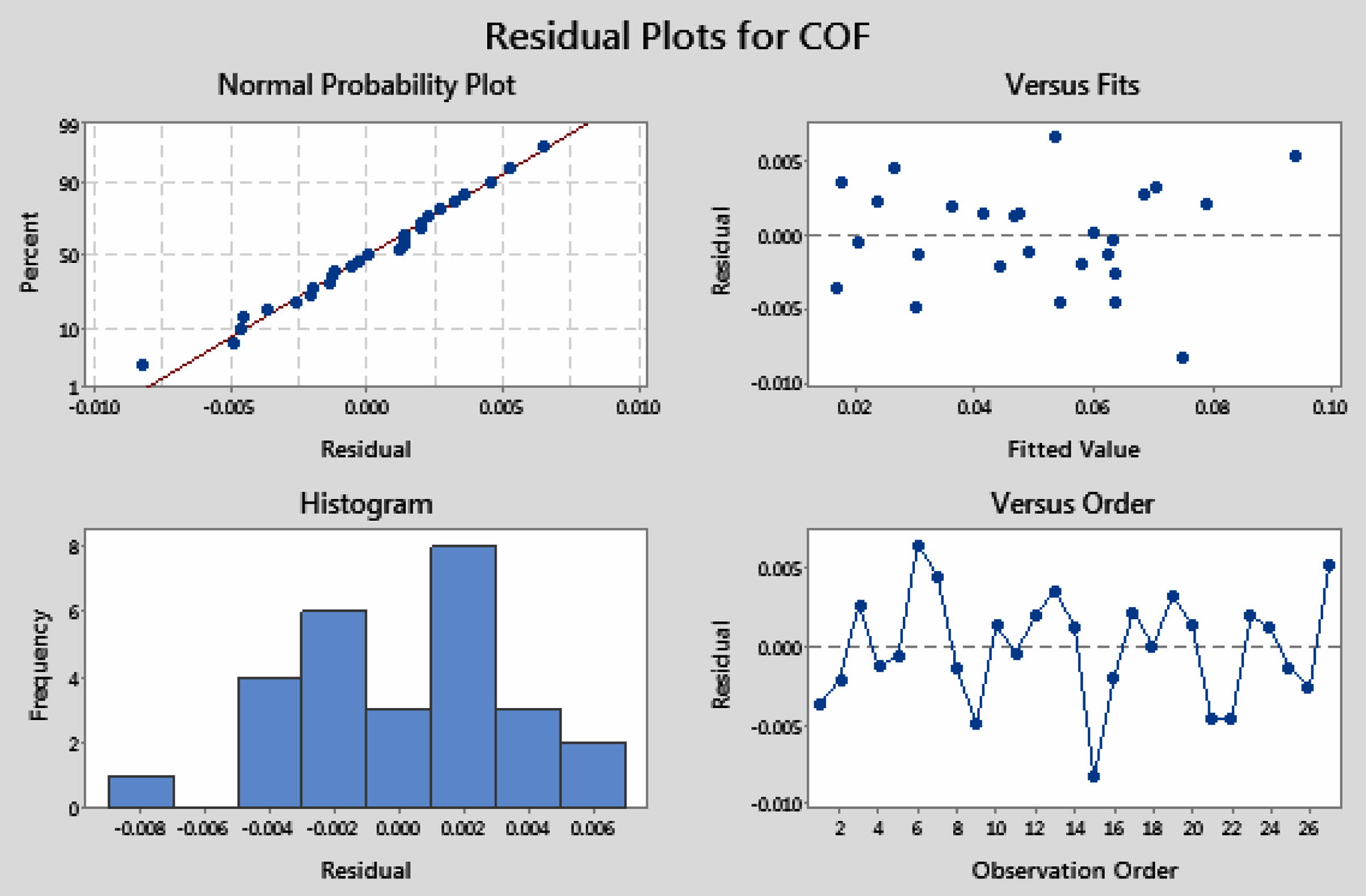 Fig. 10 Residual plots for COF |