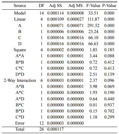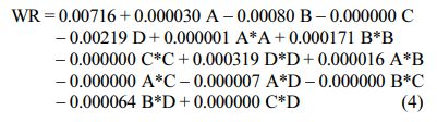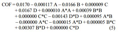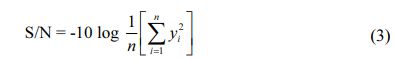 This work is intended for finding optimum factor levels that provide minimum WR and COF. Therefore lower the better is desired and the expression for computing signal to noise ratio is given by Eq. (3).