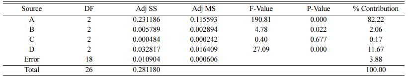 The prediction of GRG for dry sliding parameters is obtained by using Eq. (9) [35-36] and it is presented in Table 11.
