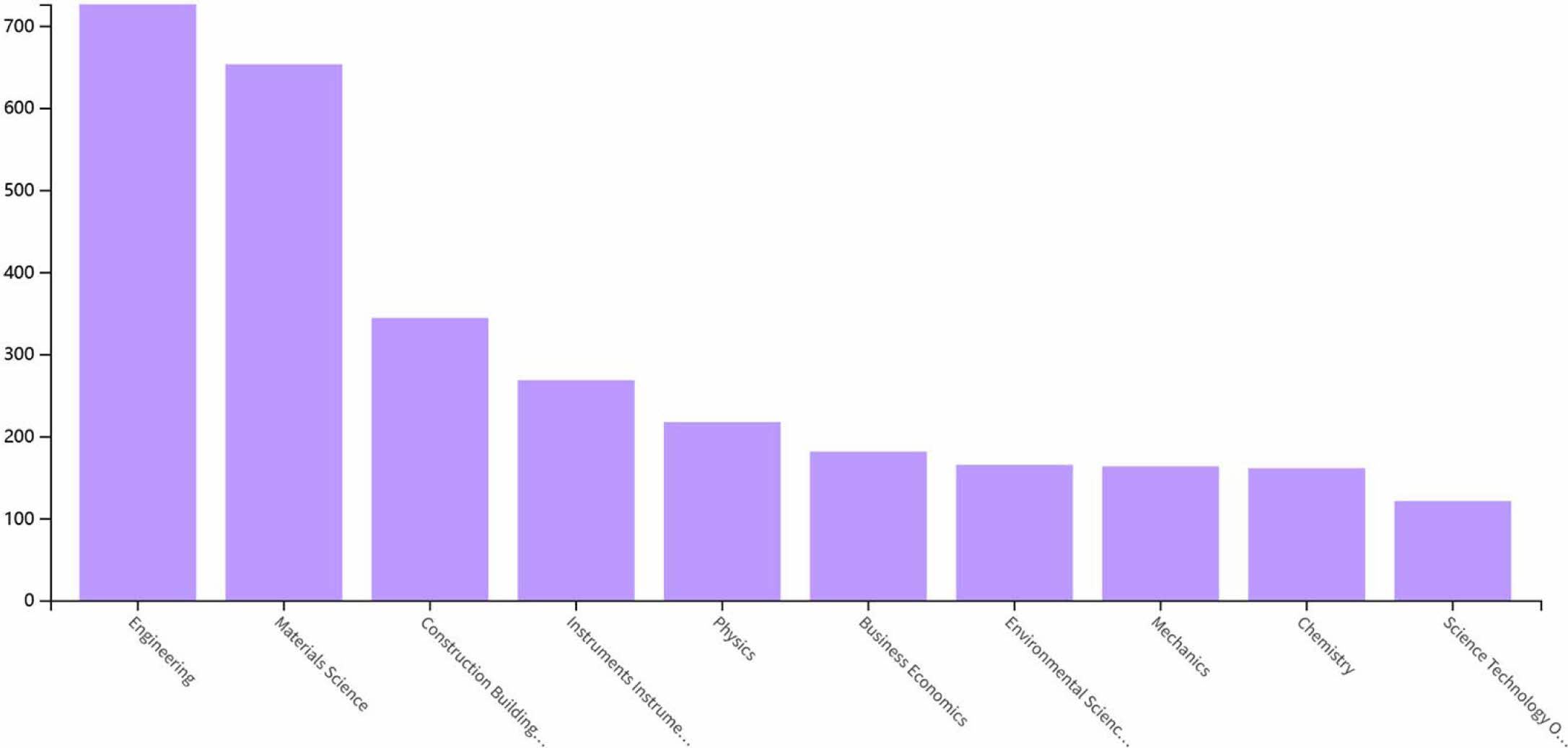 In order to better express the application research direction of ceramics in textiles, use the search results of the WoS core database to make a research direction map, as can be seen from Fig. 3, the research direction of ceramics in textiles has been applied in many fields, the most are engineering, materials science, architecture, equipment, physics, business economy. This is consistent with the special properties of ceramics used in textiles, this reflects the current complexity and variety of ceramics in the textile field, at the same time, it can be seen that many research directions have the characteristics of intersection and integration.