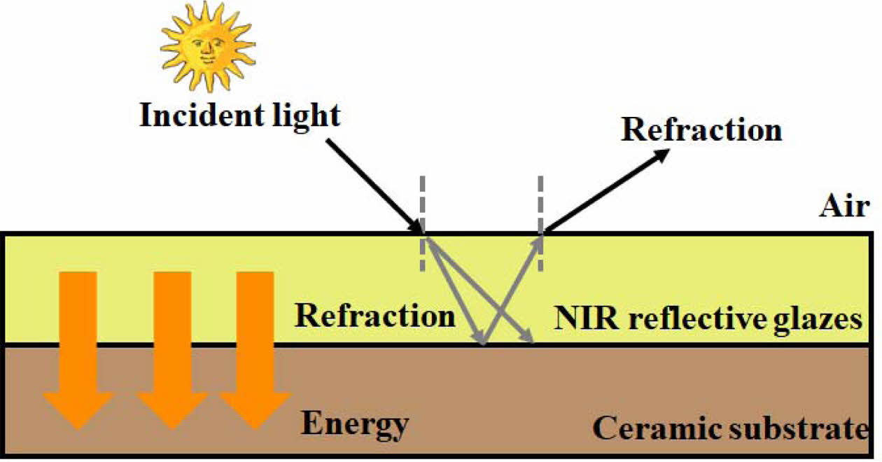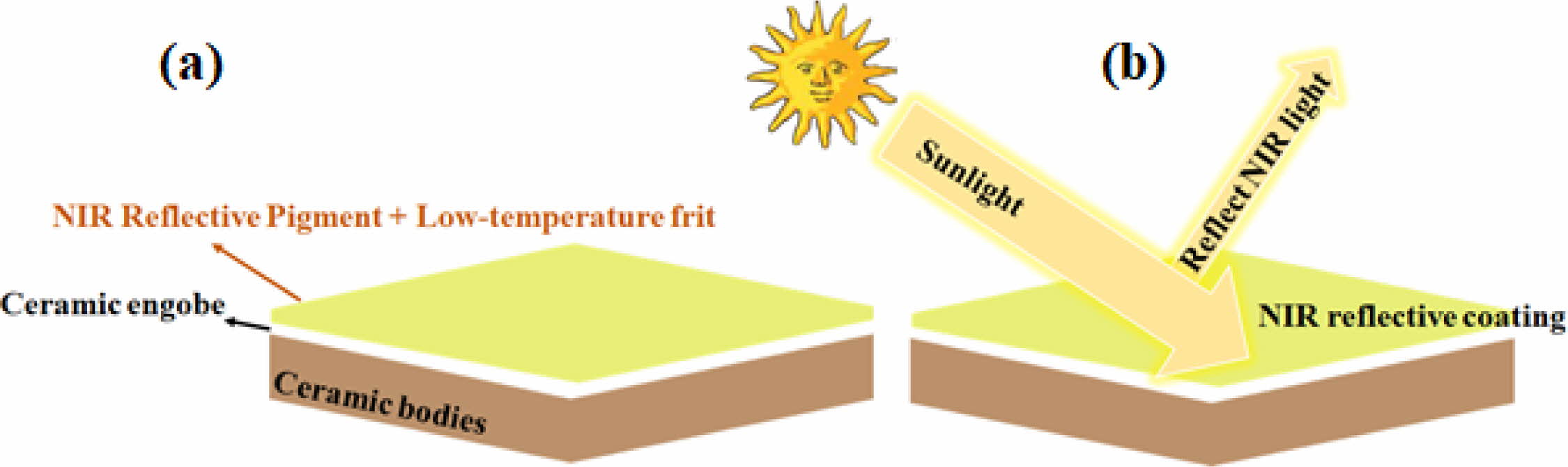 Libbra et al. [37] found that common ceramic tiles have a relatively low solar reflectance (i.e., smaller than 0.30-0.40), which means, it is necessary to optimizing the NIR reflective properties of ceramic tiles, especially the pigmented enamel layer on the ceramic substrates.