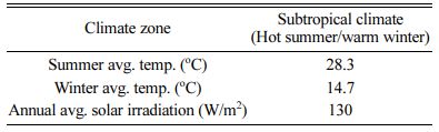 Table 1 Summer and winter average temperatures and solar irradiance of subtropical climate |