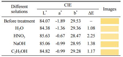 Table 3 The color coordinates of ZS@ZrSiO4 encapsulation pigment treated in different solutions |