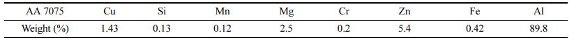 AA7075 aluminum alloy with 150 x 75 x 6 mm is used for this experiment. The material composition of AA7075 is presented in Table 1.