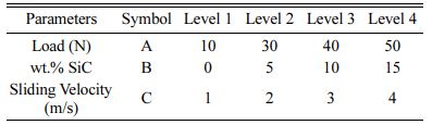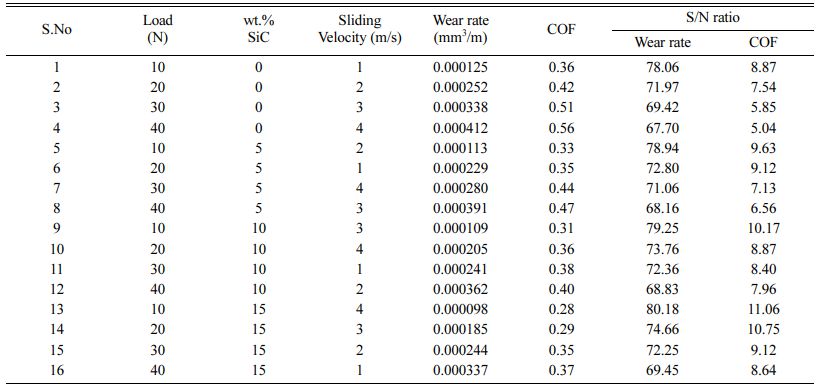 Taguchi’s optimization method reduces the experi- ment to obtain the experimental information and leads to time reduction. With respect to signal-to noise ratio, larger the better, normal the better and smaller the better methods are generally preferred. This present work aimed to obtain better 3 pass FSP Specimen with better wear and COF. So that, smaller the better is selected. Eq. (1). is used to calculate the S/N ratio [37].