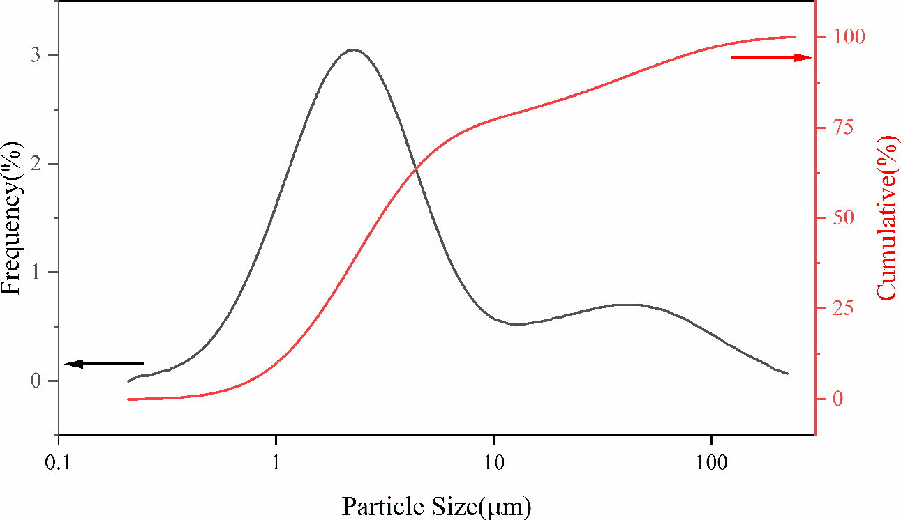 Fig. 2 Particle size distribution of the SSD. |