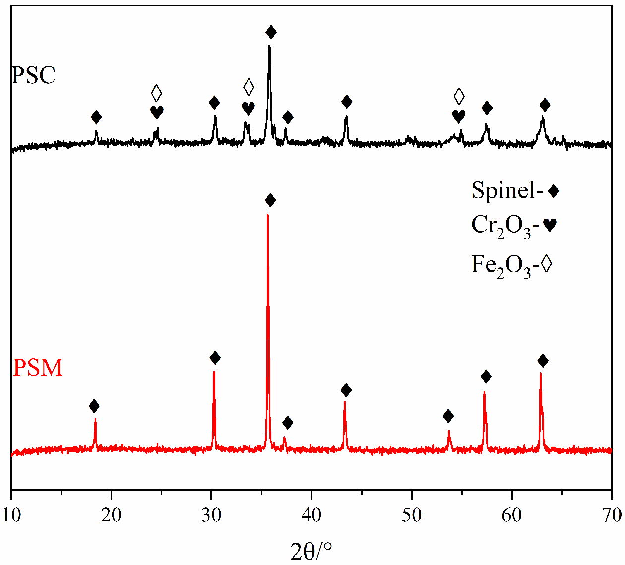 Fig. 4 XRD patterns of the PSM and the PSC. |