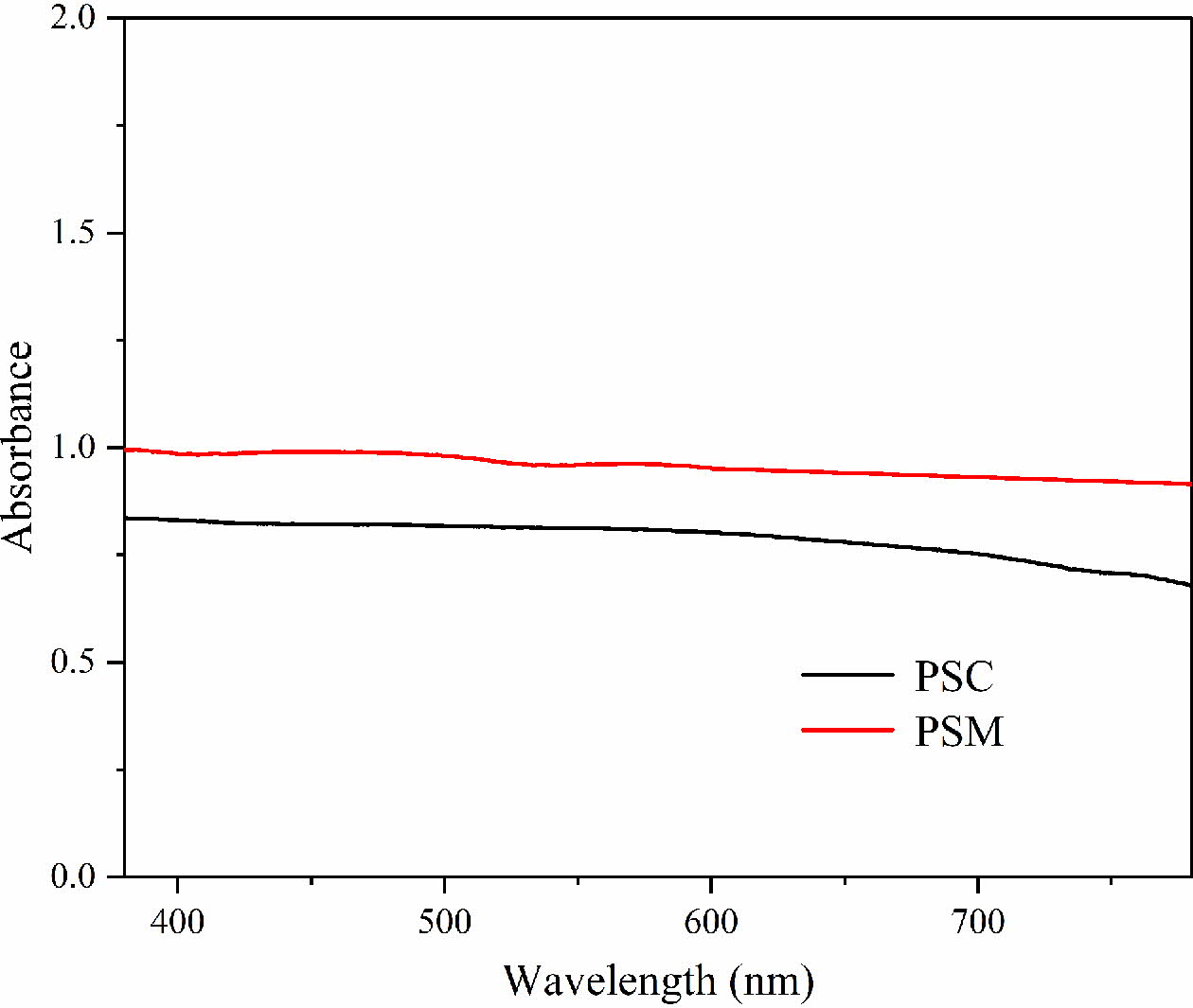 Fig. 6 UV–vis diffuse absorbance spectra of the PSM and the PSC. |