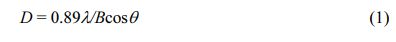 where D is the crystal size (nm), λ is the wavelength of the X-ray (Cu Kα, 1.4954 Å), B is the full width at half maximum (FWHM) and θ is the Bragg diffraction angle.