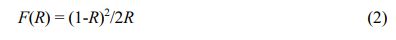where R represents the reflectance of the pigment sample at a certain wavelength. Then the plot of [F(R)hv]1/2 vs hv (h- Planck constant, v-the frequency of light) can be obtained. The linear parts of the curves were extra- polated to F(R) = 0 and the values of x-intercept indicate the band gaps of the pigment samples [28].