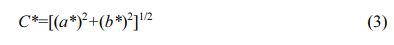 The chromaticity values, including L*, a* and b*, of the pigment samples were measured with the portable colorimeter (3nh TS7010). L*, a* and b* are color models developed by the International Commission on Illumination (CIE). In this system, L* represents the lightness and darkness of the color, which is a scale from white (L*=100) to black (L*=0). a* and b* represent the scales of green (-a*) to red (+a*) and blue (-b*) to yellow (+b*), respectively. The color saturation (C*) is calculated using a* and b* values from Eq. (3). The closer all of the L*, a*, b* and C* values are to 0, the purer the pigment’s black and the better the color rendering performance of it [29].
