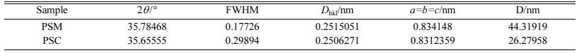 The crystal structure of pigment samples was further analyzed by XRD data. For the maximum diffraction peak (3 1 1) corresponding to spinel, Scherrer and Bragg’s formulas were used to calculate the crystal size and lattice parameters of pigment samples, and the results are shown in Table 2. As shown in Table 2, the FWHM of PSM is significantly less than that of con- ventional processing, indicating higher crystallinity and a more complete solid-phase synthesis reaction. Although the PSM has similar lattice constants with the PSC, the average particle size of the former one is much larger. There are many reasons for the above results, on one hand, the selectivity heating of microwave could lead to the heat energy being more concentrated in the reaction between transition metal elements. What’s more, the microparticles are activated by microwave, which reduces the activation energy needed by lattice diffusion and crystal boundary diffusion and further intensifies them.