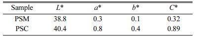 Colorimetric measurement was carried out on pigment samples prepared under different processes, and the colorimetric values L*, a* and b* of them are shown in Table 3. Compared with the PSC, the L*, a* and b* values of PSM are lower, which indicates that the color of PSM is blacker.