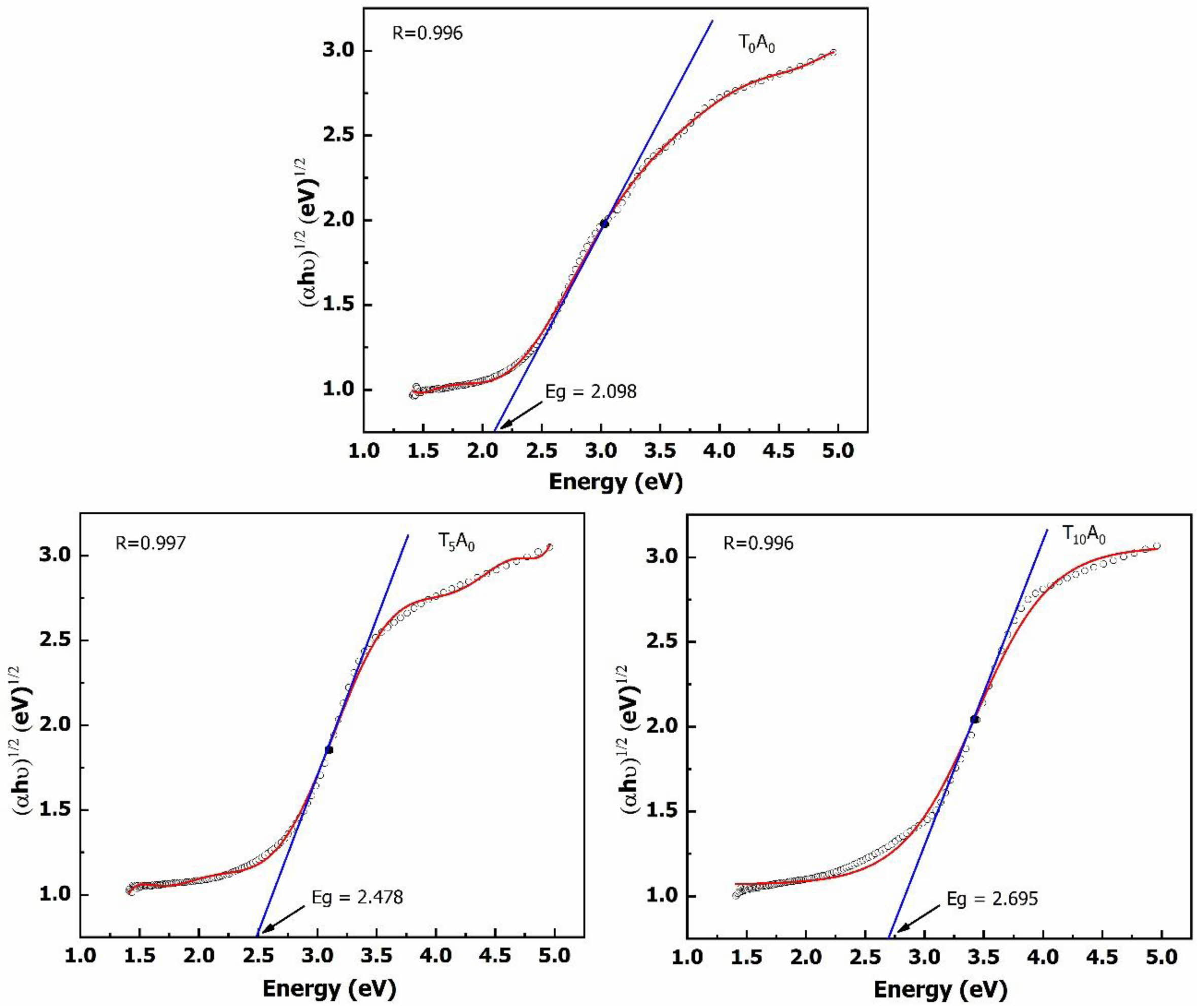 Fig. 3 Eg of the T0A0, T5A0, and T10A0 samples |