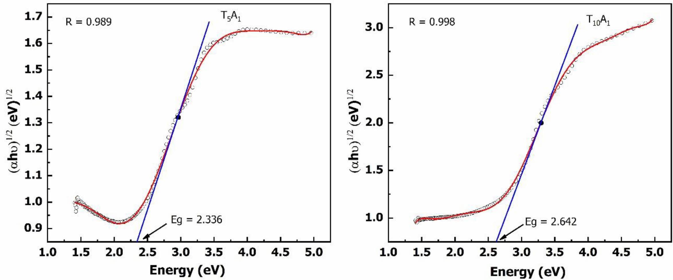 Fig. 4 Eg of the T5A1 and T10A1 samples |
