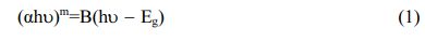 To determine the band gap energy, the graph and functional eq. (2) are determined from the results of UV-Vis spectroscopy.
