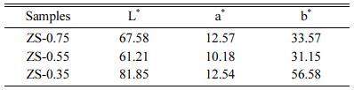 Fig. 7 shows the chromaticity coordinates of ZnSxSe1-x pigments: these are gradually close to yellow with increasing Se content, which is consistent with the fact that the samples’ color changes from ivory white to bright yellow.