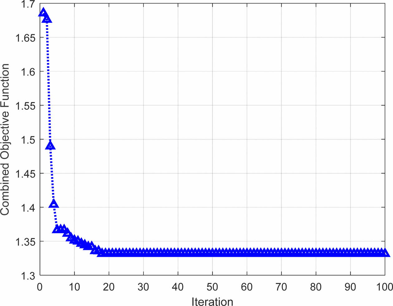Fig. 11 Objective function graph during PSO simulation. |