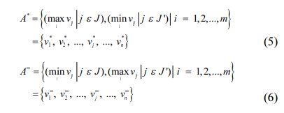 where J ={j =1,2,...n|j} associated with gainmeasures and J' ={j =1,2,...n|j}related with cost measures. Then it's safe to assume that the two produced alternatives A* and A- represent the most desirable (ideal solution) and less desirable (negative-ideal solution), correspondingly [40].