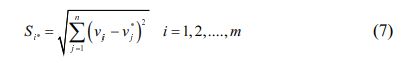 The n-dimensional Euclidean distance can be used to calculate the distance among each choice. The distance between alternative and the ideal one is then calculated as follows: