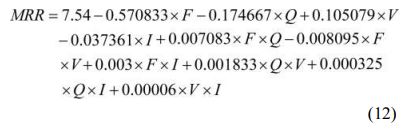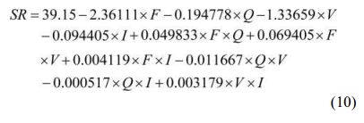 For the obtained output performance characteristics mathematical modelling is done for forecasting responses for the supplied input conditions with the considered lower and upper range of inputs. A non-linear second order model is generated for SR (Equ. (10)), KW (Eq. (11)) and MRR (Eq. (12)) using regression modeling technique [61]. The R2 value obtained during model development is 90.72% for SR, 92.84% for KW and 93.74% for MRR.