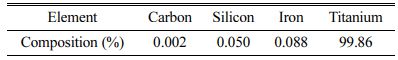 Titanium is lighter in weight is very resistant to corrosion and in most conditions, it frequently surpasses the resistance to corrosion of stainless steel. Grade 2 is the alloy of preference for the majority of industrial purposes requiring strong ductility and resistance to corrosion of four practically pure titanium grades. Titanium Grade 2 has a reduced density which makes it highly desired for weight. The strength and excellent corrosion tolerance of titanium grade 2 also makes it suitable for use in chemical, marine and desalination applications [13]. Oil and gas components, reaction and pressure vessels, tubing or pipe systems, heat exchangers, flue gas desulfurizing systems, and many other industry components are often utilizes Grade 2 titanium alloy. This grade 2 alloy at normal temperature behaves like an alpha alloy but transforms at 913±15 oC to beta phase and again returns back to alpha phase upon cooling below [14]. The density of grade 2 alloy is 4.51 g/cc with 103 GPa elastic modulus and 11.4 W/moC of thermal conductivity, hardness of 145 HV, 448 MPa and 344 MPa of yield and ultimate tensile strength. Table 1 presents the elemental composition of titanium grade 2 alloy and SEM micrograph is presented in Fig. 1.