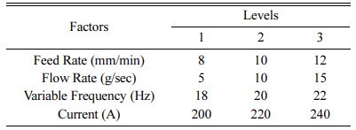 Taguchi employed orthogonal arrays (OA), which are a matrix of numbers organized in columns and rows to plan his experiments [22-27]. Each column gives a unique component whose influence on process capability can be evaluated, and each row indicates the levels (or conditions) of the evaluation criteria in a given study. The following syntax is commonly used to express an OA: La(bc), The set of experimental runs is a, the quantity of variable combinations is b, and the number of array columns is c. The 'L' sign denotes that the data is structured on a Latin square factor arrangement [28-30]. Three parameters with three level values are investigated in this study, whereby a L27(313) OA was chosen and experimental design matrix is formulated [31]. A L27 OA consists of 13 columns, in which columns 1, 2 and 5 is considered for formulating the experimental table. L27 OA is selected to perform higher experimental investigation and to obtain higher output datasets so as to reduce experimental errors [32, 33]. Table 2 lists the control variables used in the machining studies, along with their values which are selected based on the literature and machine specifications.