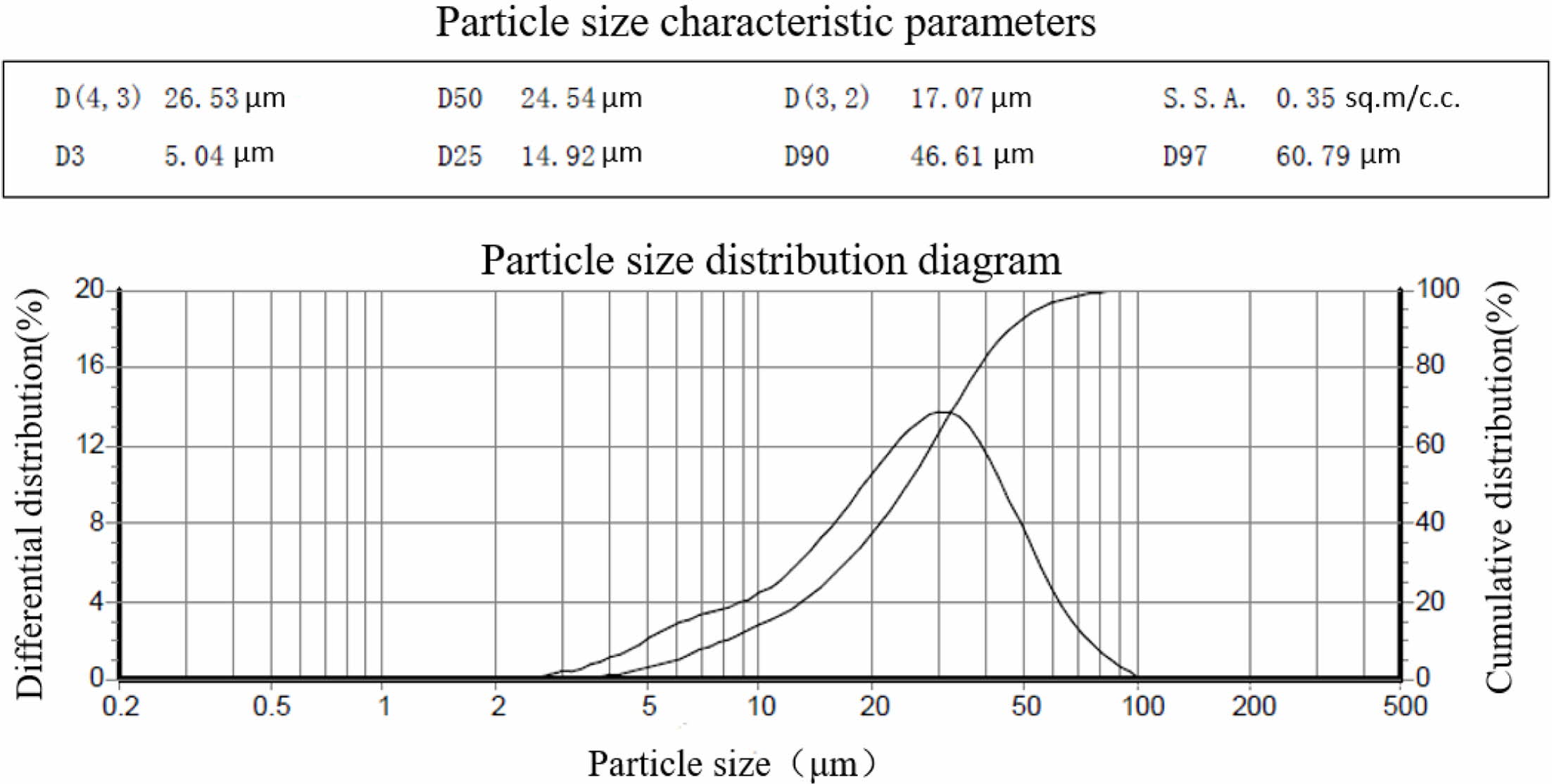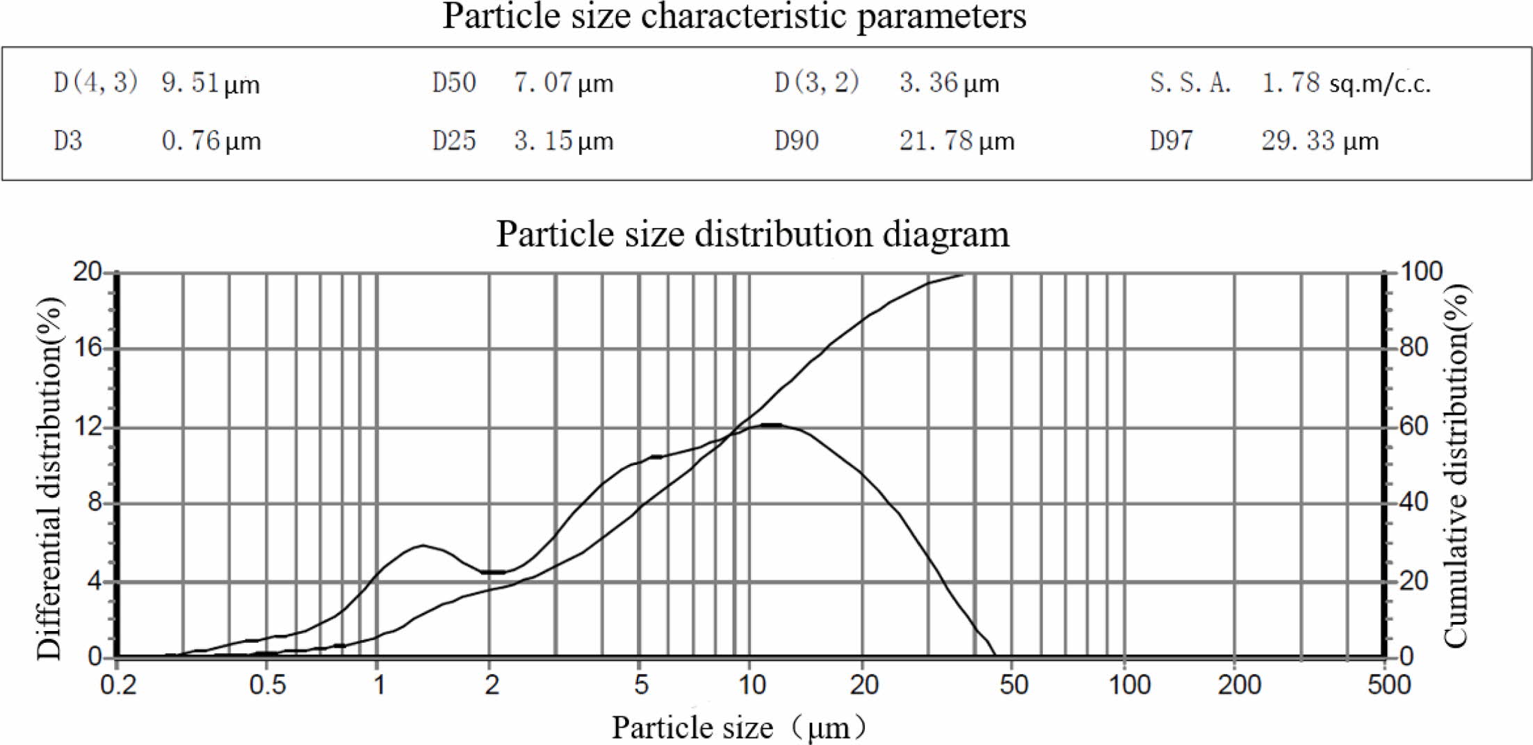 Fig. 1 Particle size distribution of original composite SiC. |