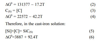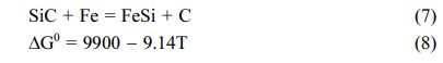 Generally, SiC does not decompose and melt at normal atmospheric pressure; instead, it directly decomposes into gaseous Si at 2,760 oC. However, SiC can be gradually dissolved in molten iron. The dissolution process and free enthalpy are as follows [32]: