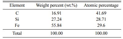 As ∆G0 >> 0, the reaction can spontaneously proceed to the left. Hence, SiC can be decomposed into element [Si] and [C] in the molten cast iron, and the reaction cannot spontaneously proceed to the right. This indicates SiC particles are added rather than generated by the internal reaction, as shown in Figs. 5-6.