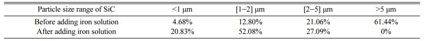 Table 4 Particle size distribution of composite SiC powder before and after adding molten iron |