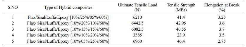 Flax/Sisal/Luffa /Epoxy [10%/05%/25%/60%]