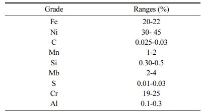 The extraordinary property of Incoloy 825, seen in Table 3, is corrosion resistance. As degraded and oxidized, rust, pitting and cravings, intergranular degradation, and stress cracking are stopped by Incoloy 825. It is particularly useful in the treatment of sulphuric and phosphoric acids, flue gases, saline gases, oil wells, and sulfur-containing marine waters.