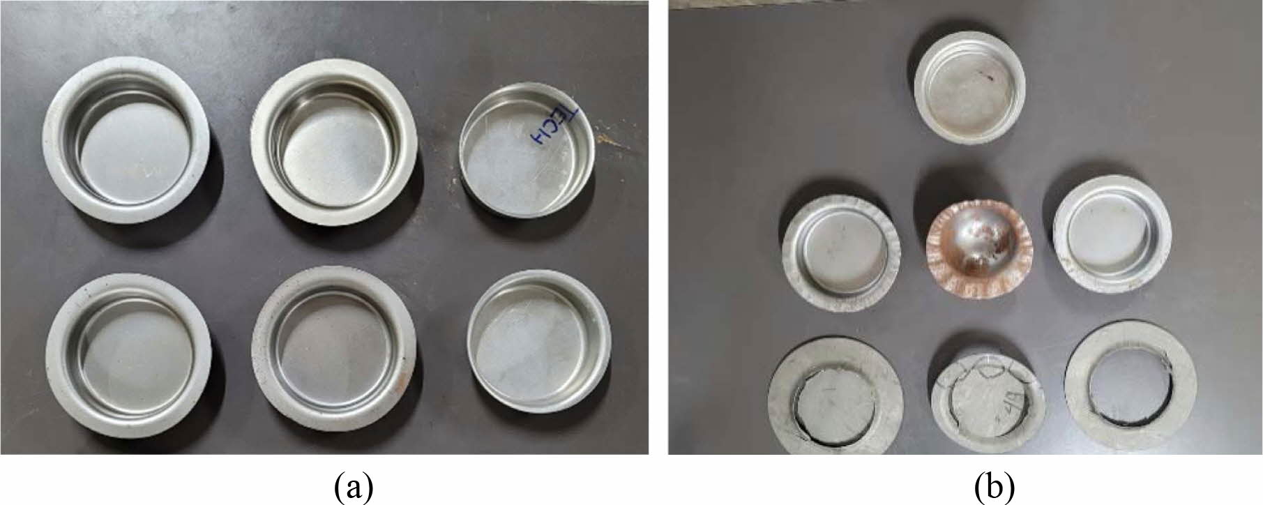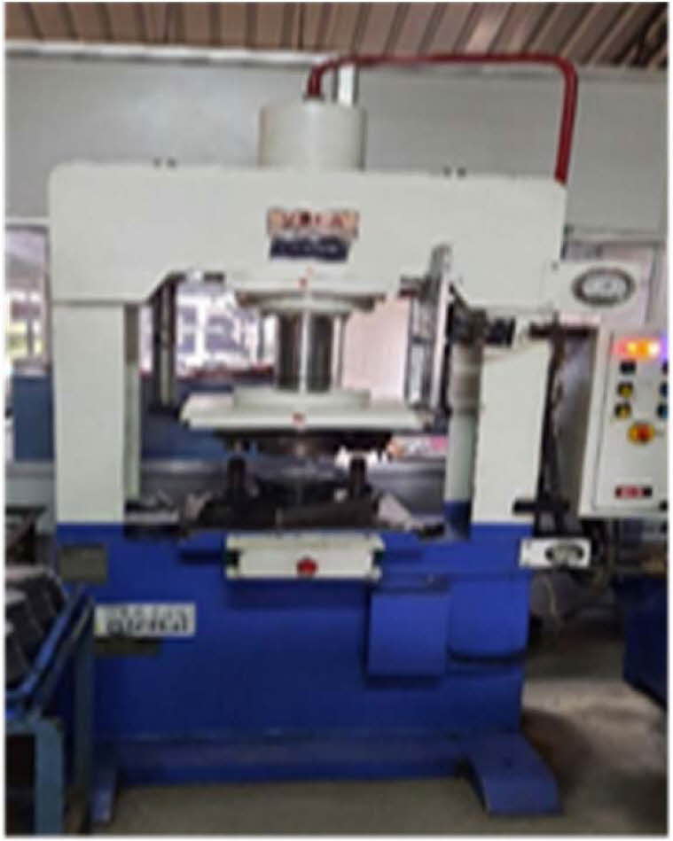 The calibration of the machine is done, and the specified pressure of the punch is preset during its action. Next, the pressure to hold the workpiece during punching is set depending upon the thickness of the blank used. During the drawing process, the punch moves towards the blank at the specified pressure. The machine is controlled by two modes: manual and automatic. The down and up movement of the punch is fully controlled manually via buttons. The punch moves when the button is pressed and returns when the button is released in automatic mode. It has safety sensors on each side to directly punch on the blank and detect human interruption during the method and that will enhance the safety of operators. The blank materials of various properties are selected based on the appli- cation for this study. The detail of the blank materials and their yield strength is mentioned in Table 1.