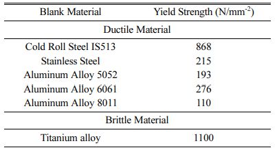 Table 4 Types of blank material used & its process parameters by mathematical calculation |