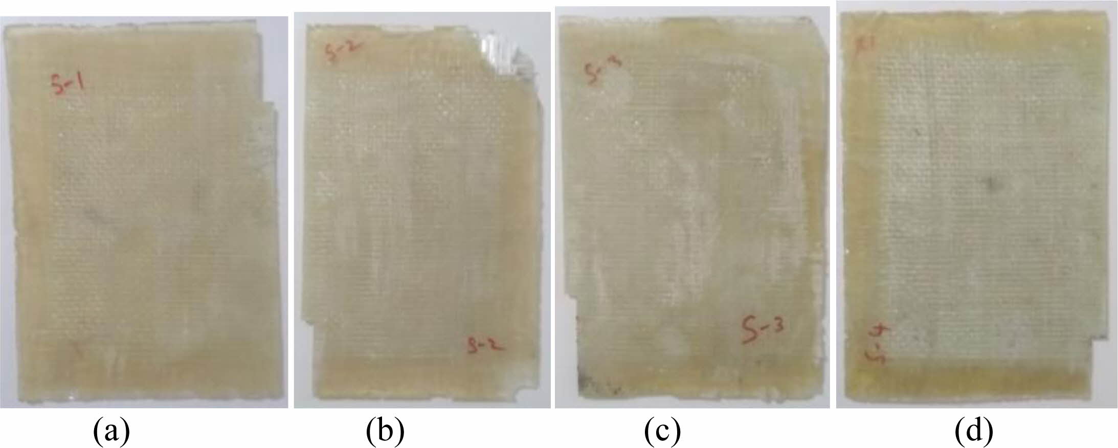 The weight percentage of the glass fibres are varied to obtain for composite laminates. The epoxy used in this work is LB011 epoxy resin lapox B_11. The hardener used is Triethylenetetraamine (TETA). The composite laminates are prepared with varying the glass fibres with 10%, 20%, 30% and 40% reinforcement and remaining with the epoxy. The composite laminates prepared are shown in Fig. 2(a-d).