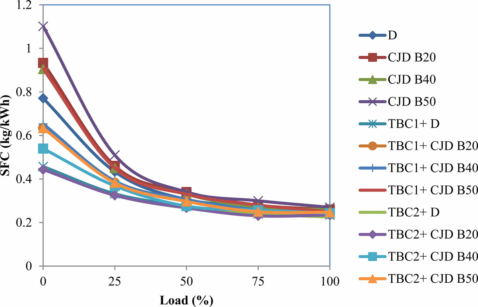 · The results also showed a decreased value of SFC in the TBC engine due to lower thermal conductivity. For all tested fuel, the coated engine showed lower consumption than the conventional engine. Compared to conventional engines operated with neat diesel, TBC1 coated engines had a maximum decrement of 7.41% while operating with CJD B20