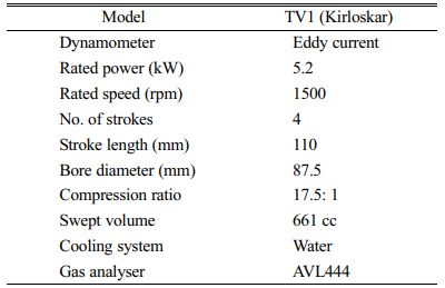 The overall experimental set up is shown in Fig. 1 and the technical specifications of the test engine are listed in Table 7. The engine is attached to a dynamometer, which works based on eddy-current theory. The dynamometer is calibrated every time before use. The engine is started manually and operated with neat diesel until it reaches a steady state condition. Before conducting the experiment, the engine was thoroughly checked to ensure that there were no fuel and lubricant leaks. When the coolant water reached 50 °C the engine was ensured reaching steady state. Totally the readings were taken in three different phases. In the first phase, the engine was operated with neat diesel and its ternary blends on an uncoated engine. The values such as fuel consumption, exhaust temperatures were measured at increased load conditions. The tests were conducted by changing its load from 0 to 100% at 25% load interval. In each test, the fuel consumption, smoke, concentrations of CO, HC and NOx emissions were measured at constant speed. An AVL type multi-gas analyzer was used to find the exhaust gas concentrations. In the second and third phases, the TBC coated pistons were fixed and the experiments were repeated.