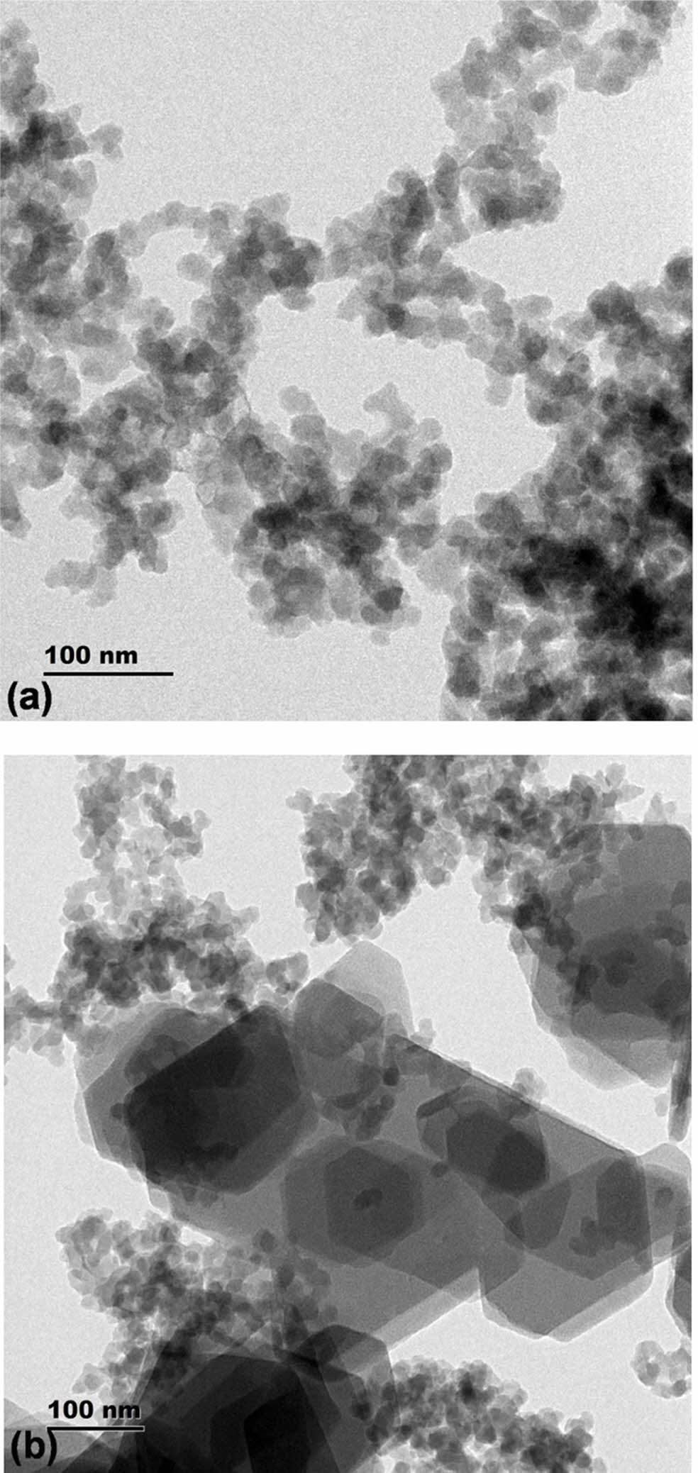 The transmission electron microscopy images indicated the presence of distinct hexagonal cages aggregated as clusters. It was also evident that the clusters are present one above other, which is indicated by the dark zones. The catalysts showed presence of similar clusters which are aggregated one above other. The cages were found to be hexagonal with different sizes. This once again indicates the presence of hierarchical cages. The sample synthesized at low temperature indicated more uniform sized clusters, while the sample synthesized at high temperature indicated the presence of large and small clusters as shown in Fig. 2(a) and (b). Thus, the uniformity of cages is strongly influenced by temperature of the synthesis.