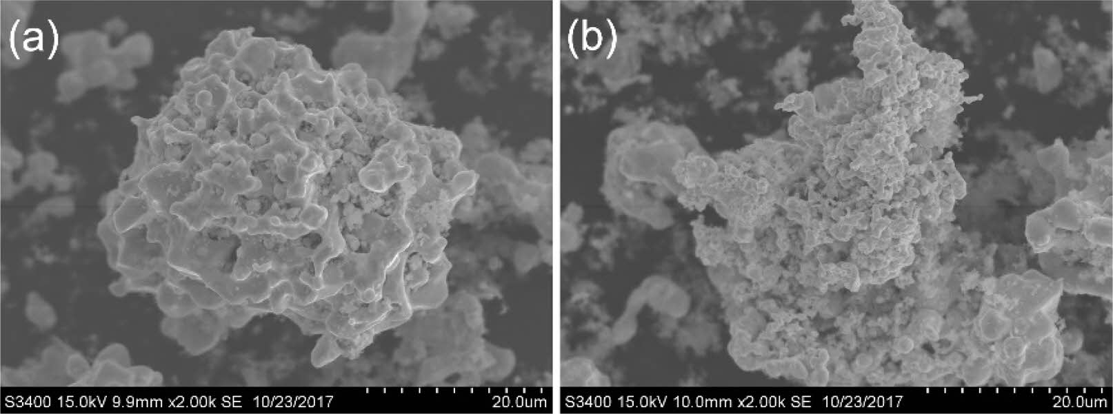 Fig. 17 Morphology of powders composed of (a) (Zr, Ta)B2 and (b) (Zr, Ta)B2-TaB2 phases [99]. |