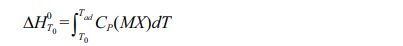 ΔH is the enthalpy of formation of MX at T0 (J·mol-1), and Cp is the molar heat capacity of solid products (J·mol-1·K-1).