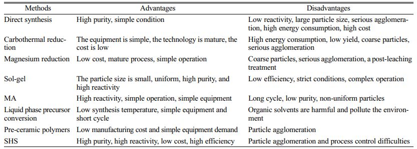 The process is used for the preparation of carbides and borides, one of the most important reasons is the potential reduction in manufacturing costs and relatively simple equipment requirements. However, agglomeration of the products will occur in different degrees during the pyrolysis process.