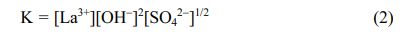 Before the reaction system reaches the titration end point, La3+ ions are in a stable equilibrium state with SO42- and OH- groups, and no precipitation is observed. When the chemical reaction (1) is in equilibrium, the equilibrium constant K is expressed as follows: