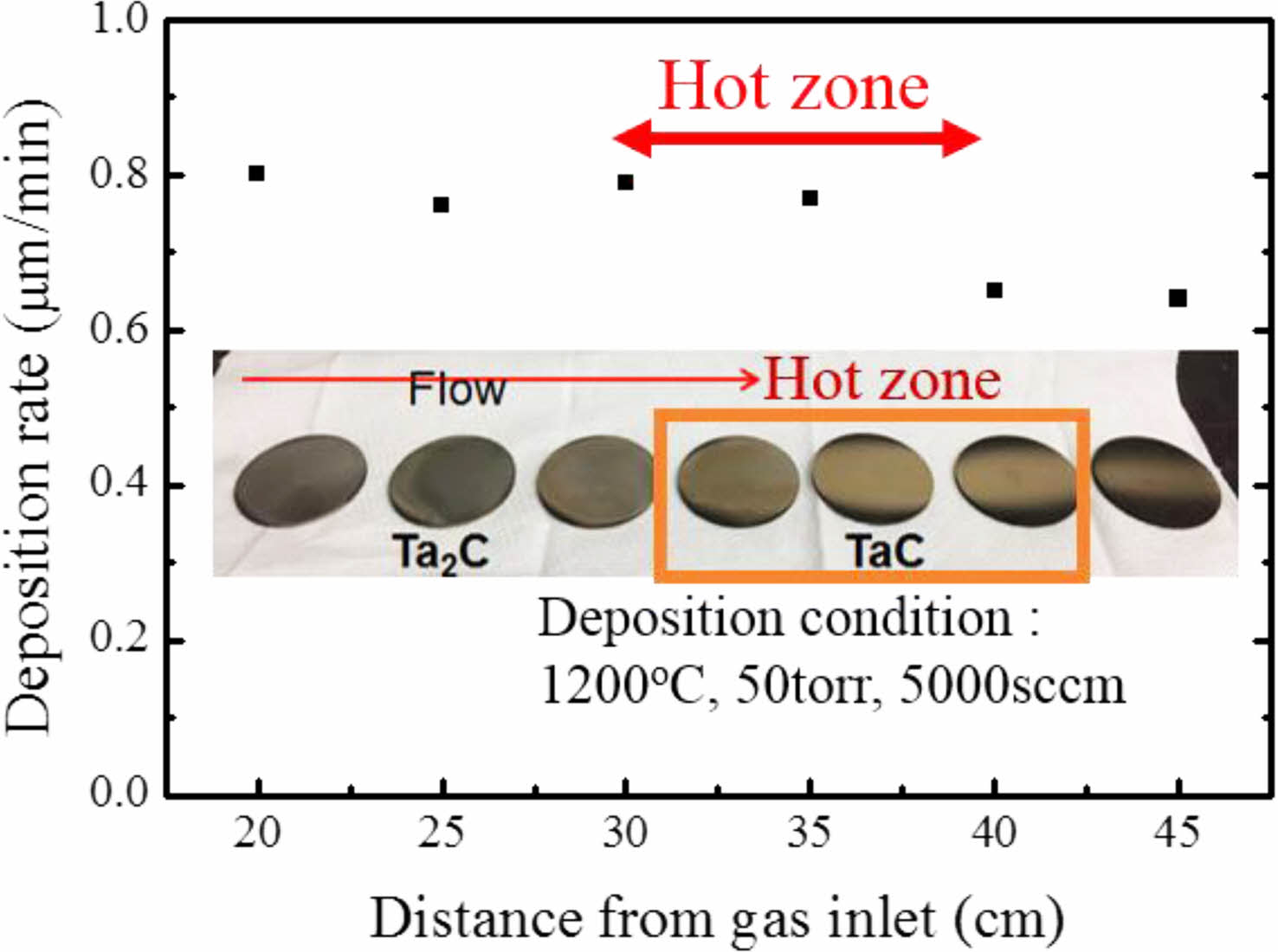 Fig. 2 Deposition rate of TaC with different positions. |